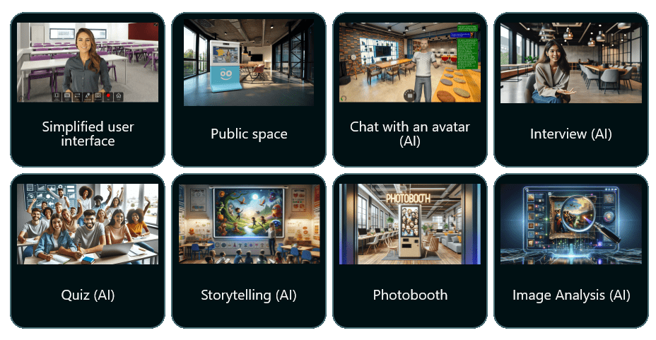 Use the talking avatar to simulate job interviews or practise languages. Or use the storytelling app to create immersive stories complete with text and images. Whether for training, education or communication, these apps make videos more dynamic, engaging, and fun.