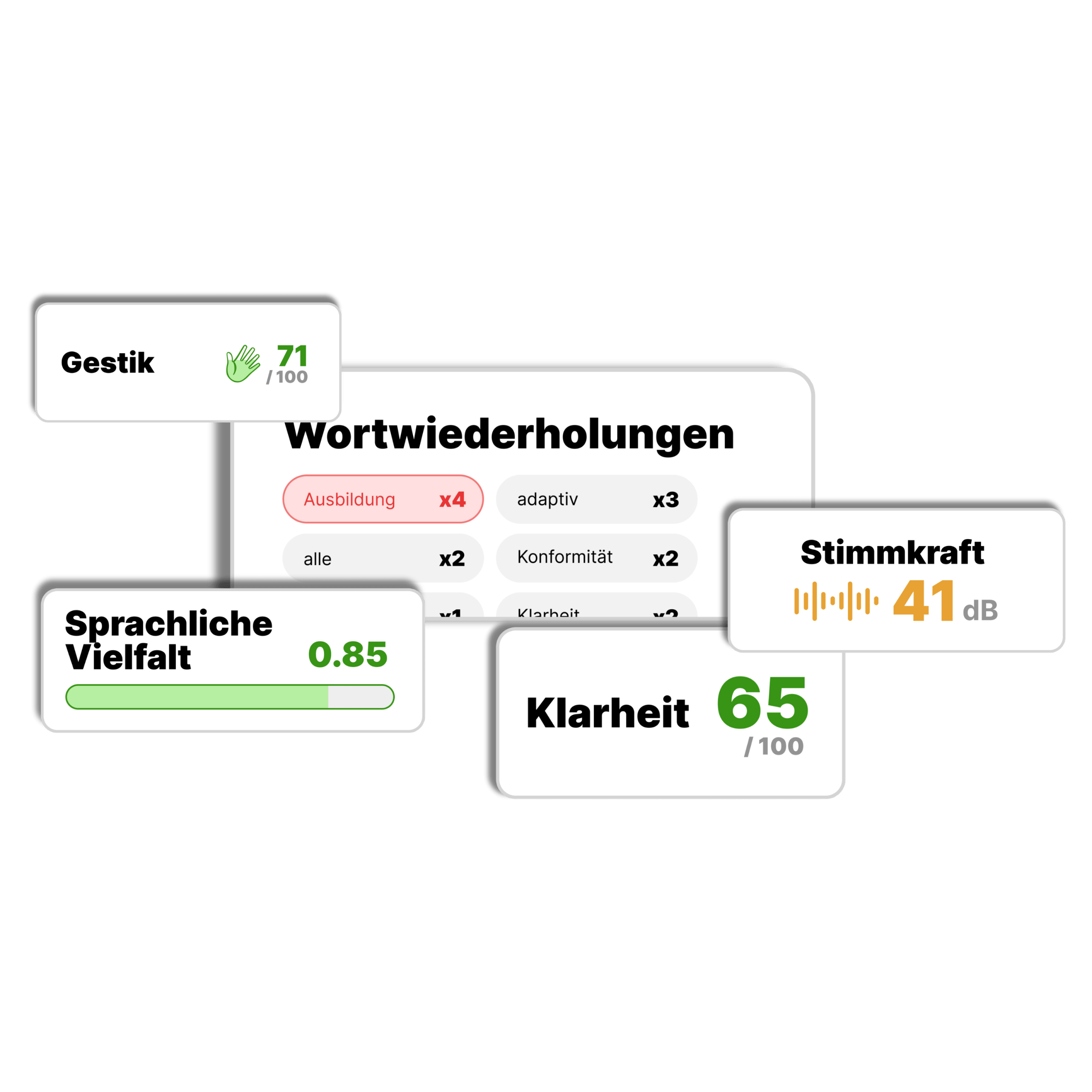 Analyse von Aussprache, Sprechtempo und -pausen, um für kontinuierliche Verbesserungen zu sorgen.