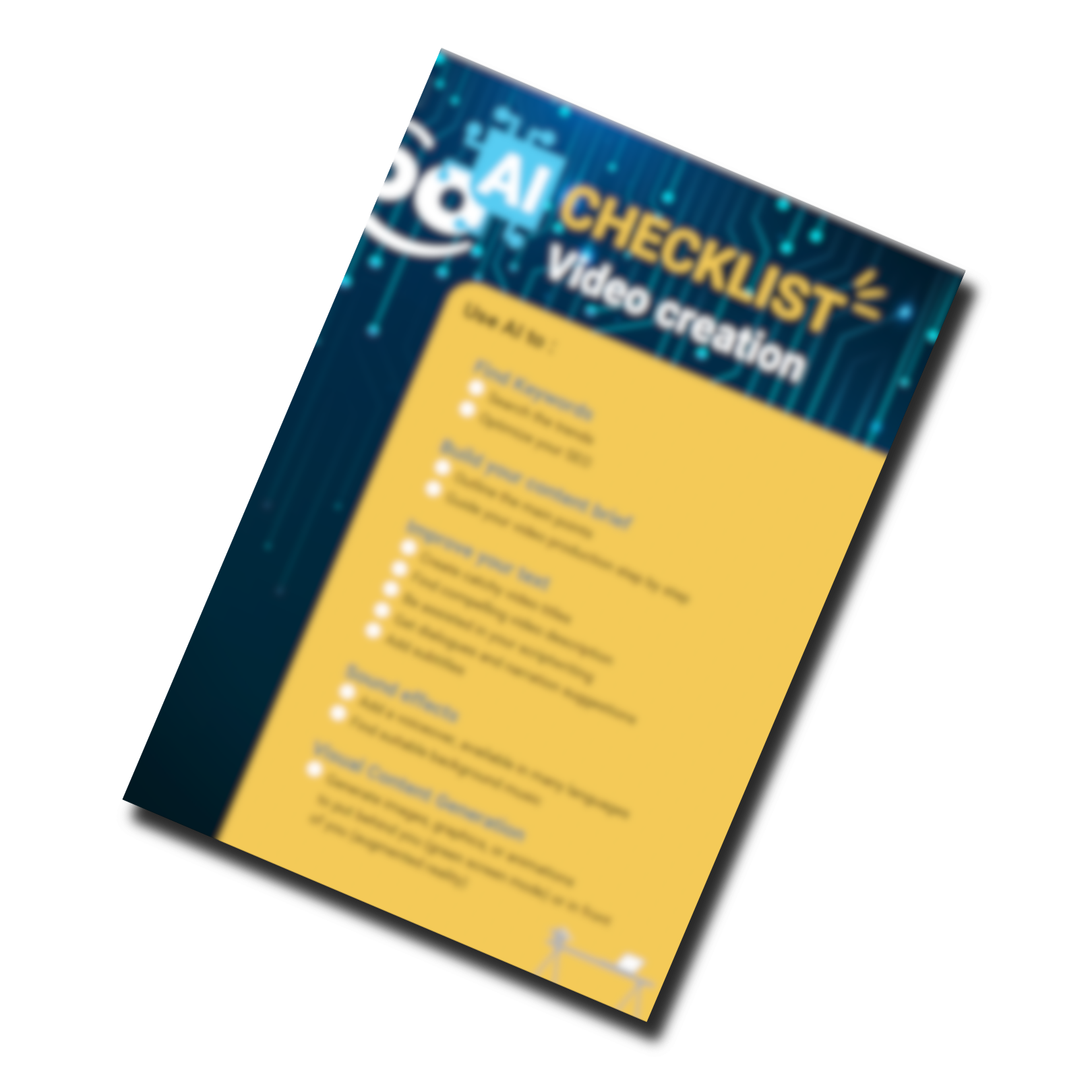 L’intégration de l’intelligence artificielle dans le processus de création vidéo offre une multitude de bénéfices Elle permet d’accélérer la production, d’améliorer la qualité, et d’optimiser l’engagement. L’IA peut automatiser certaines tâches fastidieuses, libérant ainsi du temps pour les créateurs. Voici une checklist qui vous permettra de l’intégrer à votre processus de création vidéo de façon judicieuse !